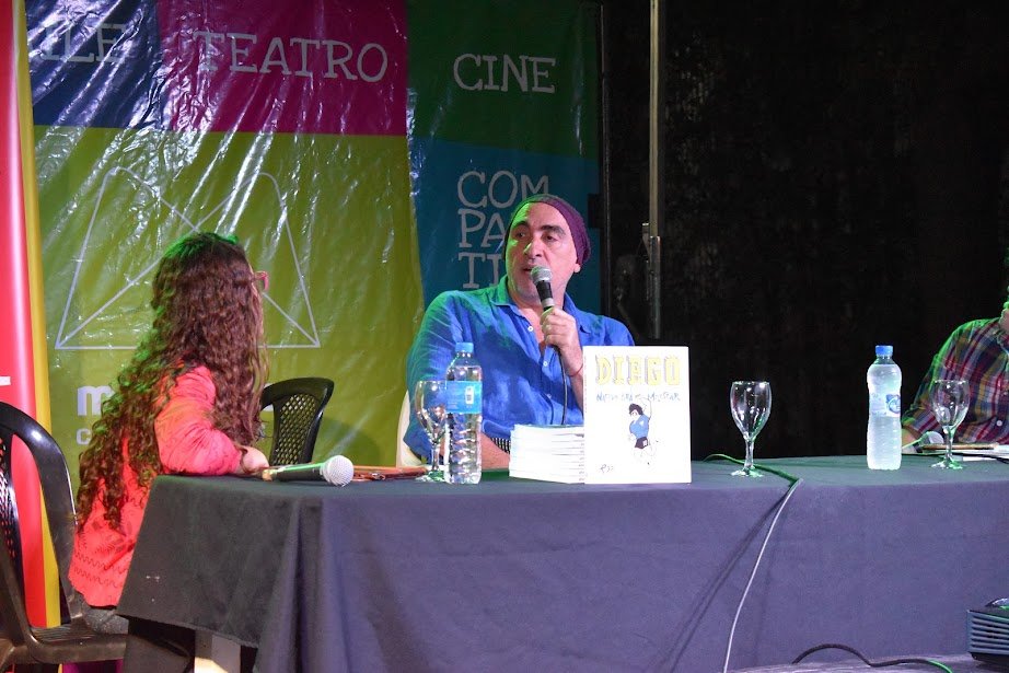 Miguel Rep, durante la noche del sábado, realizó un intenso recorrido sobre su creación “Diego, nacido para molestar”, una obra best seller que convocó un buen marco de asistentes, dando cuenta de la fama y reconocimiento del dibujante.