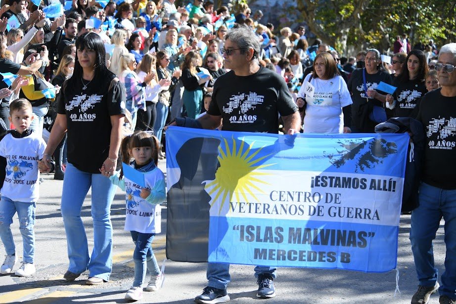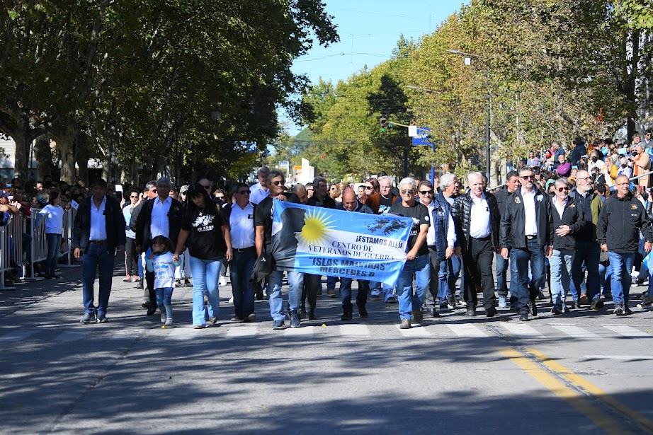 Desde las 10hs la avenida 29 se vistió de gala para conmemorar con un desfile cívico-institucional un nuevo aniversario de la guerra de Malvinas, ratificando la soberanía sobre su territorio y homenajeando a nuestros héroes locales. El palco principal estuvo cubierto por los veteranos de Mercedes como así también sus familiares que ocuparon un sector de las gradas adyacentes.