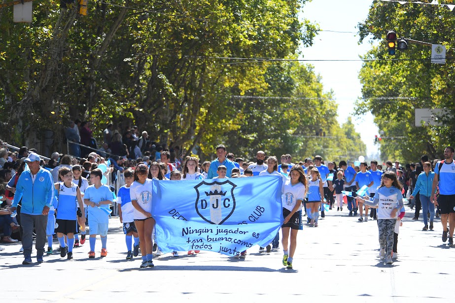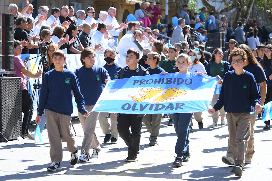 En homenaje a los héroes y Veteranos de Malvinas se realizó un desfile cívico-institucional. Hubo una multitudinaria participación de vecinos y vecinas que aplaudieron y acompañaron a cada institución, club, fuerza de seguridad, representación rural, agrupación gaucha, ballets, todos al ritmo de la banda de Gendarmería Nacional Cabo Adolfo Romero. “Estamos muy felices y orgullosos por la jornada vivida en familia, en homenaje y reconocimiento a nuestros héroes, los veteranos y caídos en Malvinas”.