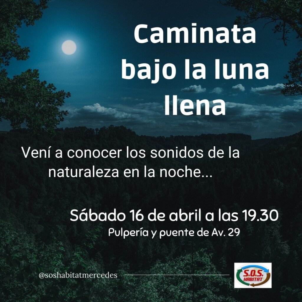 Desde la Asociación Civil S.O.S. Hábitat anunciaron que el sábado 16 abril se llevará a cabo una nueva caminata bajo la luna llena. Es la segunda actividad del año que realizarán a partir de la hora 19:30 partiendo desde el Puente que cruza el río Luján, a metros de la Pulpería de Cacho.