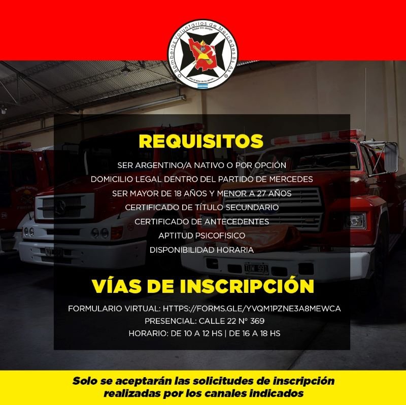 Desde el cuerpo activo de Bomberos Voluntarios de Mercedes anunciaron la apertura de la inscripción para el curso de ingreso de 2022 que permitirá la cobertura de vacantes en el cuerpo.