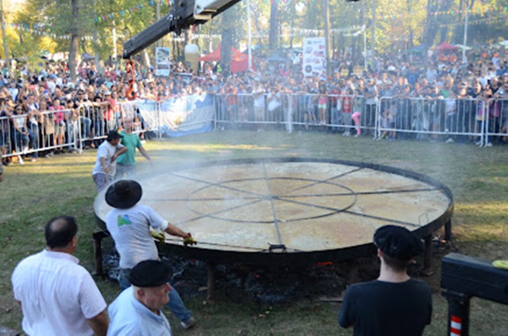 Un atractivo que durante casi dos horas tuvo al publico y las tribunas montadas espacialmente para ello fue el amasado, elaboración y cocción de la torta frita más grande del mundo, de poco más de 5 metros de diámetro.