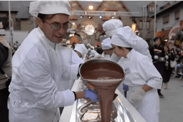 Miles de vecinos y turistas se reunieron en el centro de San Carlos de Bariloche para ver y probar la barra de chocolate «más larga del mundo», elaborada por 150 trabajadores que utilizaron 1.500 kilogramos de materia prima y lograron un producto de 210 metros de largo.