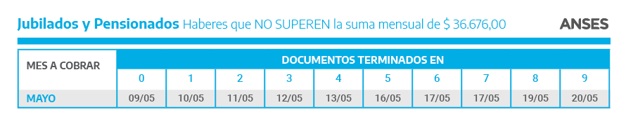 ANSES informa el calendario de pagos del mes de mayo para jubilados, jubiladas, pensionados y pensionadas, Pensiones No Contributivas, titulares de la Asignación Universal por Hijo y la Asignación por Embarazo, Asignaciones Familiares y de Pago Único (Matrimonio, Nacimiento y Adopción) y Prestación por Desempleo.