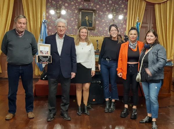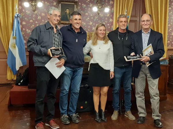 La siguiente distinción fue para el comercio Gabisor. Julio Leconte, que supo estar al frente del comercio que meses atrás cumplió 40 años, pasó al recinto con sus dos hijas para recibir la placa de manos de Florencia Comalini y Edgard Kilmeatte, además de la presidencia.