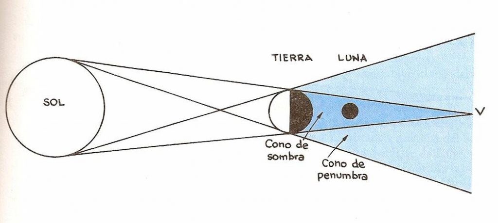 Recordemos que este fenómeno se produce al interponerse la Tierra exactamente entre el Sol y la Luna (lo que ocurre sólo cuando la órbita lunar alrededor de la Tierra coincide con la de la Tierra alrededor del Sol, es decir atraviesa el nodo), por lo que la sombra de nuestro planeta se ve proyectada sobre nuestro satélite natural, que además debe encontrarse en su fase “llena”. Un eclipse lunar se denomina total cuando la Luna ingresa por completo en el cono de sombra terrestre.