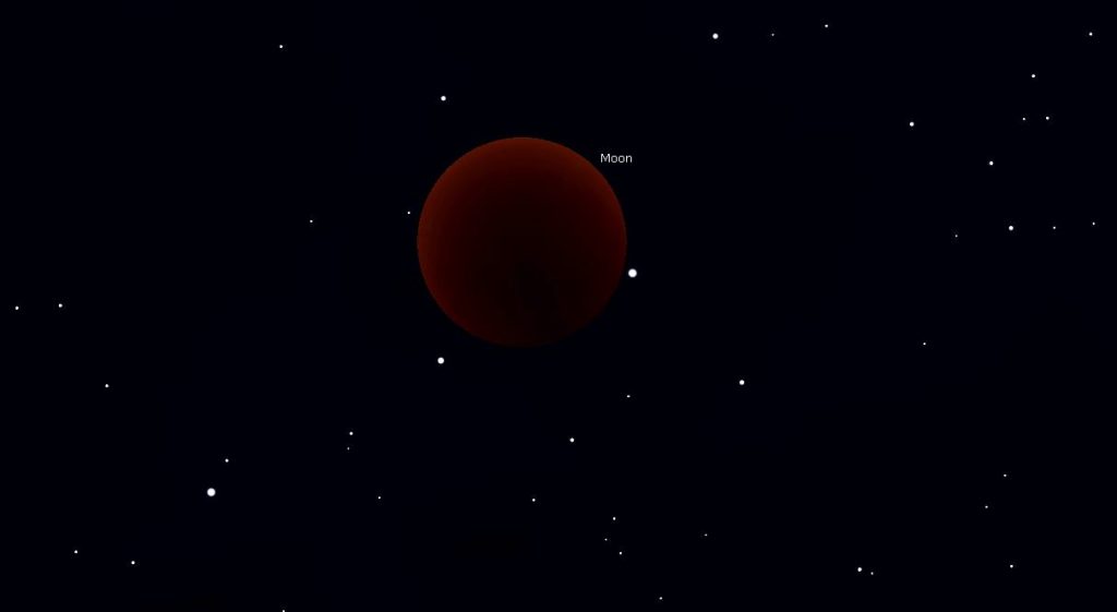 Se trata de un eclipse de gran duración (01 hs 26 min la fase total, 03:28 la parcial). La Luna estará cerca de su perigeo (mínima distancia a la Tierra), con un diámetro aparente de 33`. Y si bien el eclipse no es perfectamente central, un borde de la Luna sí lo será (cuándo la sombra de la tierra coincide con ese sector).