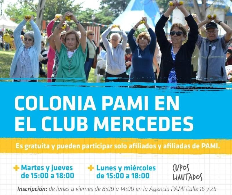 El PAMI Mercedes inicia la colonia para sus afiliados con diferentes actividades en el Club Mercedes. Los interesados pueden optar por dos turnos cuando se inscriban en la sede de la Agencia Mercedes en calle 16 y 25.