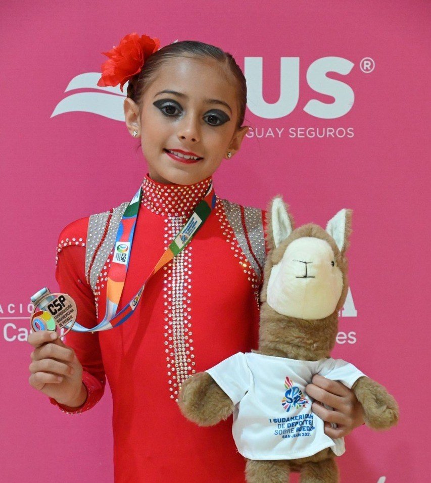 En tanto la mercedina Justina Bruschi que entrena en la escuela de Patín Infinito, dirigida y acompañada por sus técnicas nacionales Candela y Sofía Bruschi logró un 5to puesto Sudamérica.