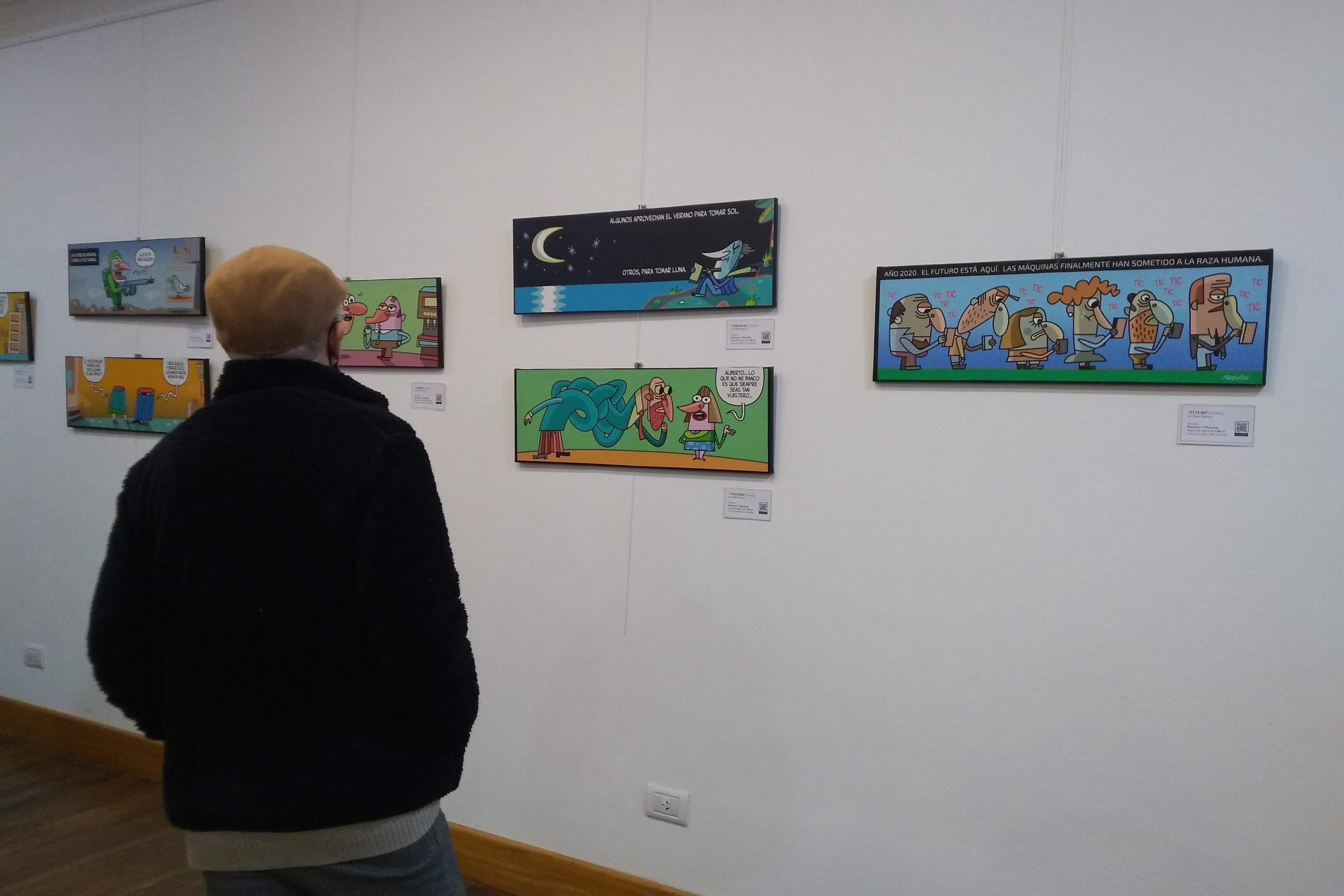 «La muestra ‘Humor en Cuadritos’ presenta una selección de chistes publicados en las páginas del Diario Muy, del grupo Clarón, entre los años 2010 y 2015, reproducidos en alta resolución sobre tela. La intención de esta exposición es ofrecer una nueva experiencia visual con dibujos que se publicaron originalmente en papel de diario y en dimensiones reducidas. Estas ilustraciones devenidas en cuadro y en un espacio de arte, buscan que los espectadores puedan reflexionar y observar, casi con una lupa, el trabajo del humarista gráfico en detalle», destacó Pablo Blasberg que extiende la invitación a su muestra al público general para este sábado 4 y domingo 5 de junio, desde la hora 18 y hasta las 21.