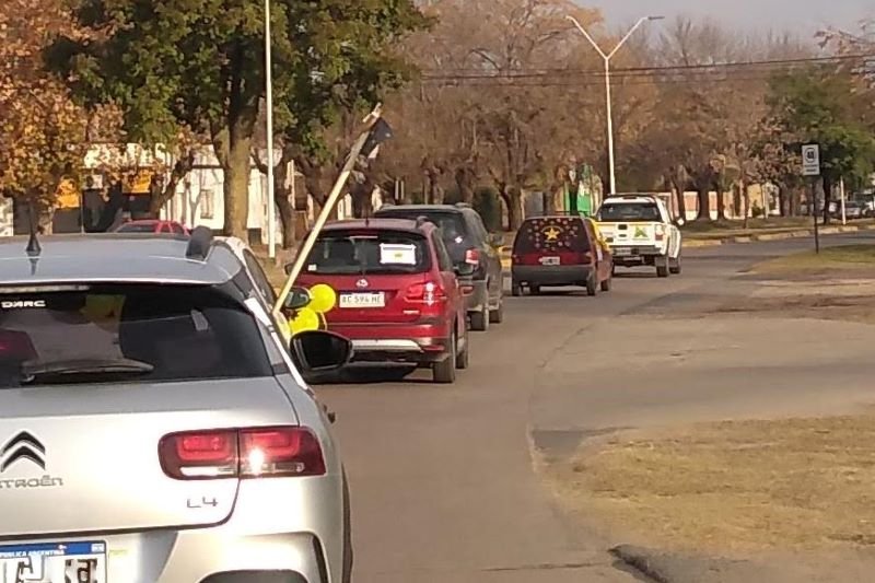 El encuentro fue en la Plaza San Martín para luego continuar por la Avenida 29, siguiendo por la 40, la 1, la 2 y retomando la Avenida 29 para volver a la plaza principal de la ciudad. Con globos y cintas de color amarillo que identifican al grupo, luego entregaron folletos en el centro de la ciudad.