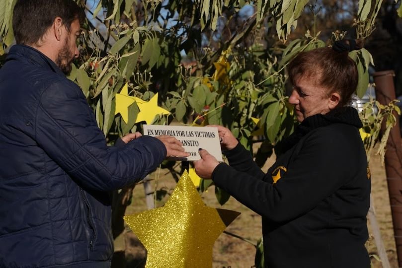 En el marco del mes de la Seguridad Vial, luego de una caravana de vehículos y una marcha de velas, en la jornada del sábado último, el Grupo Estrellas Amarillas Mercedes llevó adelante la colocación de placas con los nombres de las víctimas fatales cuyos familiares integran el grupo. Pero además, se colocaron nuevas plantas de nuevas víctimas fatales, ya que en Mercedes los fallecimientos tras siniestros viales continúan sucediendo.