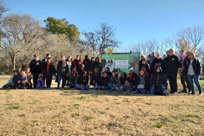 Pasado el mediodía, los familiares fueron acondicionando el lugar. Estrellas Amarillas en distintos árboles y hierros donde luego se colocarían las placas, y una guirnalda con cintas amarillas decoraban las plantas y árboles.