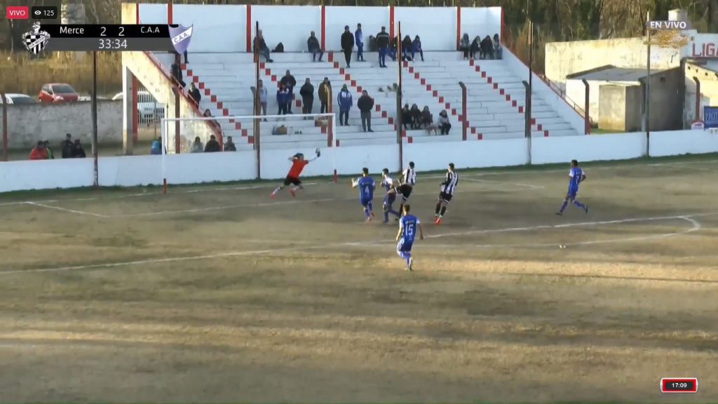 En el primer tiempo Club Mercedes tuvo un rendimiento regular y lo llevó a estar 2 a 0 abajo, hasta que en la última jugada logró el 2 a 1 con el que se fue al descanso.