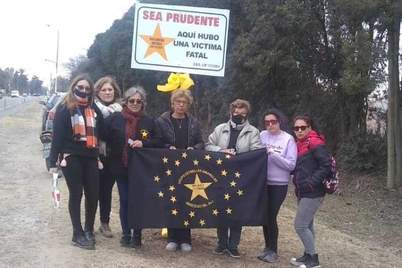 En la tarde del viernes último, familiares y amigos de Macarena Antola la recordaron colocando un cartel con la Estrella Amarilla y su nombre ya quehace seis meses fue víctima fatal de un siniestro vial en Acceso Manuel Sanmartín y calle 130.