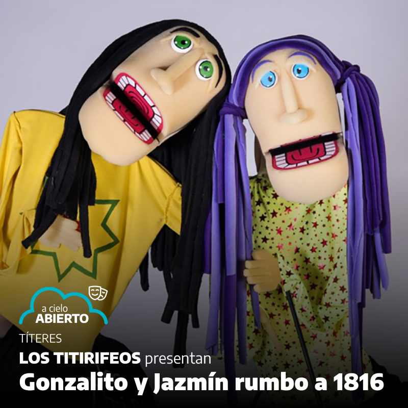 “Gonzalito y Jazmín rumbo a 1816” es un espectáculo para toda la familia dedicado al Día de la Independencia. Es una aventura cómica con títeres y música donde, además de divertirse, el público viajará por nuestra historia y conocerá a uno de nuestros grandes héroes: Manuel Belgrano.