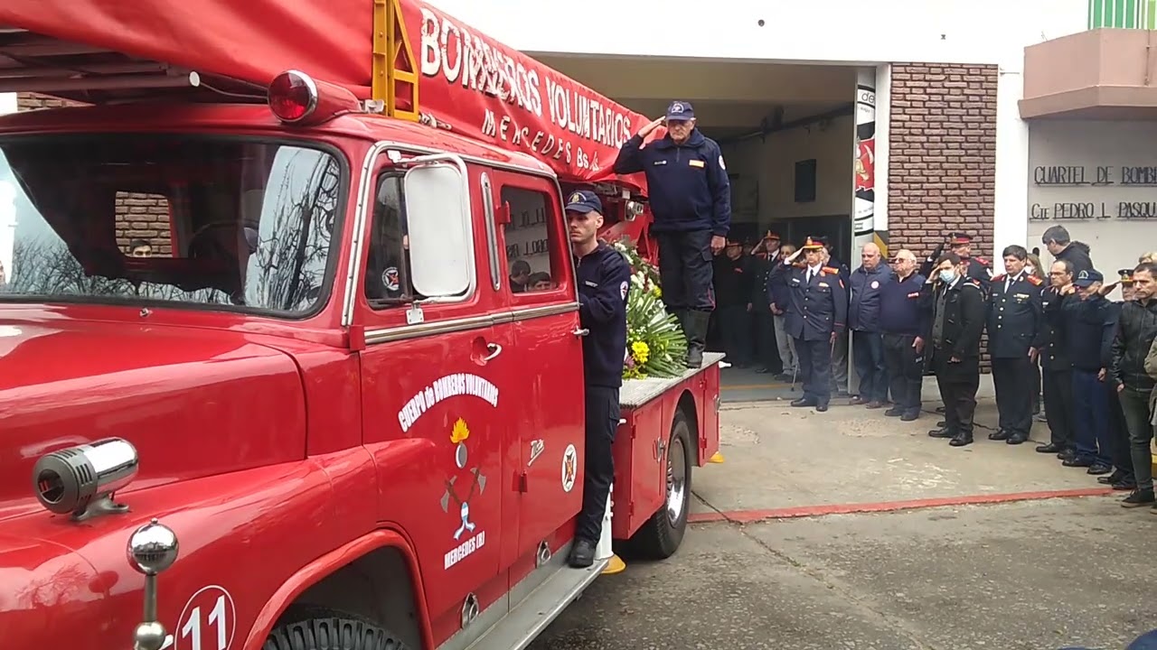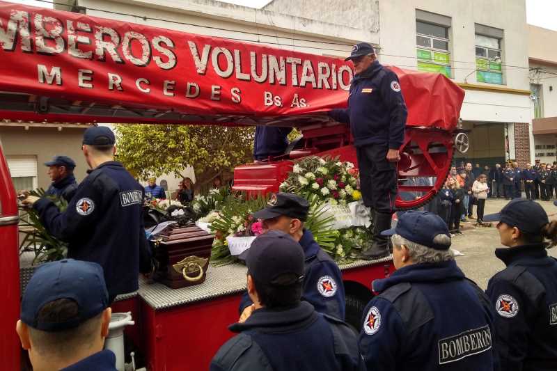El Jefe del Cuerpo Activo de Bomberos Voluntarios de Mercedes, Mario Quaglia, emocionado, agradeció a los presentes y a familia por despedir a Juan Valle con todos los honores protocolares que se despiden a los Bomberos Voluntarios. Asimismo, les pidió a los presentes que lo recuerden a Juan con una de las imágenes más emblemáticas de él, con su saco de cuero, su casco y arriba de un autobomba.