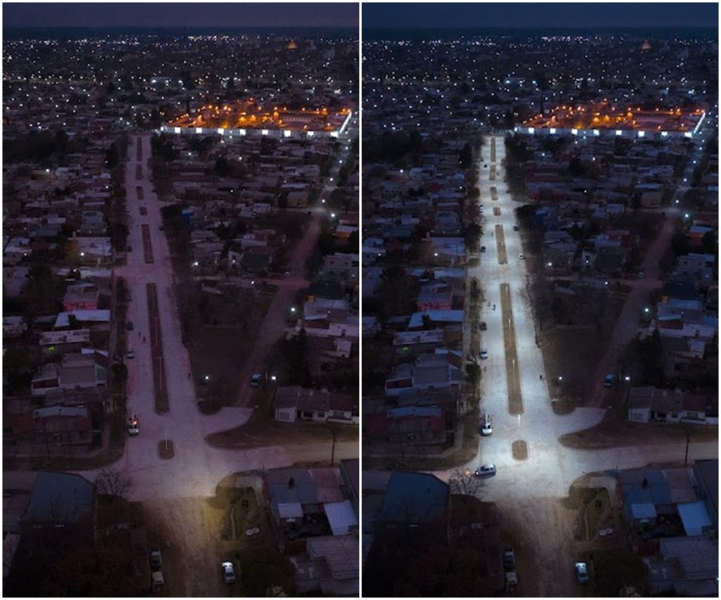 Desde este martes la zona ya se encuentra totalmente iluminada a led y es algo que se prevé continuará en otros sectores, como se viene dando desde hace tiempo en Mercedes.