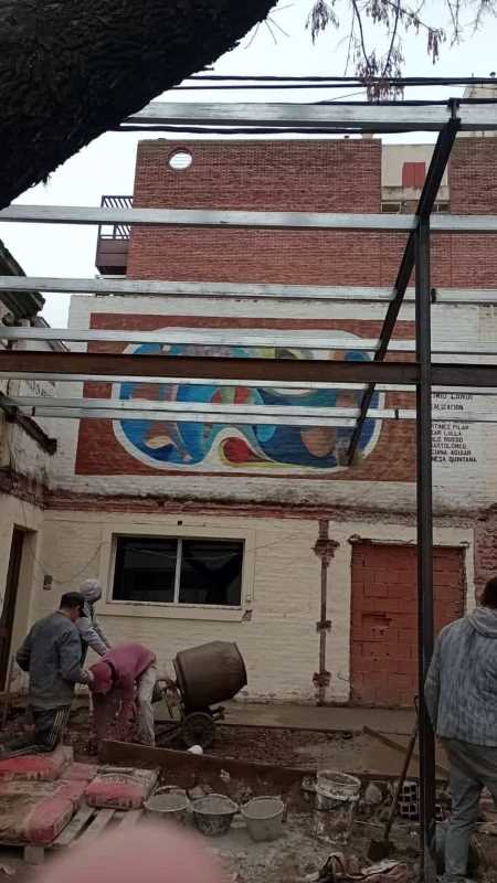 Por TeCleArte – Desde hace unos meses, el Museo de Ciencias Naturales Carlos Ameghino está en obras. Primeros los techos, algunas modificaciones en su interior y por estos días están haciendo arreglos en la fachada de su entrada por calle 26 y preocupa que estén tapando el mural diseñado por Octimio Landi.