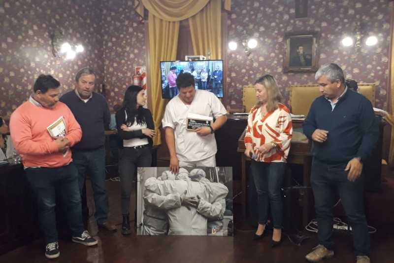 En el marco del acto, los concejales le entregaron al SAME la obra fotográfica «Más Unidos que Nunca» del fotógrafo Walter Villa, de la imagen ganadora del concurso Internacional en España, categoría B – Covid 19 – Fotografía individual en monocromo/color.