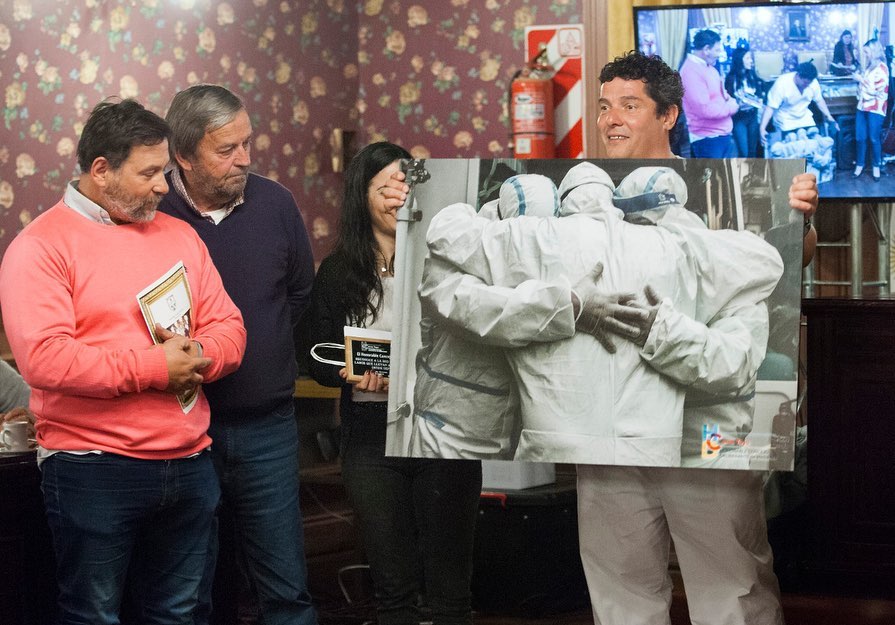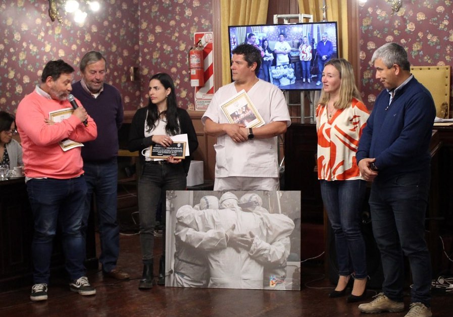 En el recinto se hicieron presentes Martín Avalle, Cristian Paglieri y Lucía Rosito para recibir la distinción y la fotografía impresa de Walter Villa que no pudo hacerse presente. La imagen retrata a los trabajadores del SAME en su labor durante la atención ante la pandemia de covid-19.