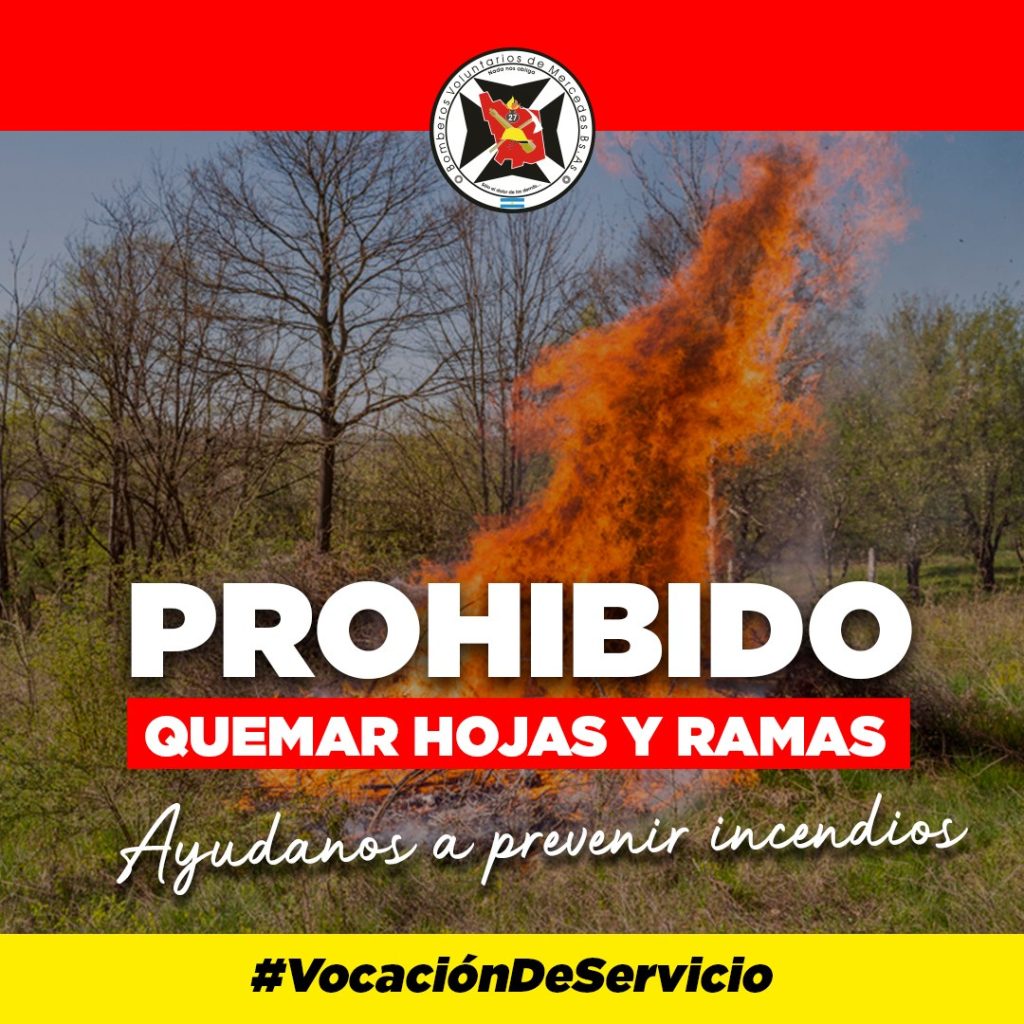A través de sus redes sociales, el cuerpo de Bomberos Voluntarios de Mercedes recuerda la vigencia de la ordenanza que prohíbe la quema de hojas y ramas, especiamente en la vía pública, sin control.