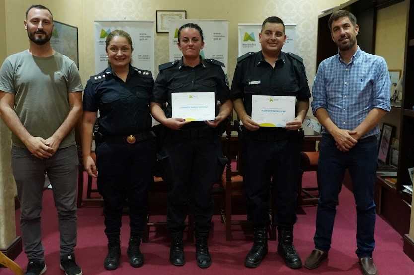 El Municipio de Mercedes reconoció por «su compromiso y labor» a los policías María Florencia Carranza y Maximiliano Machado. Los efectivos ayudaron a salvarle la vida a una vecina días atrás.