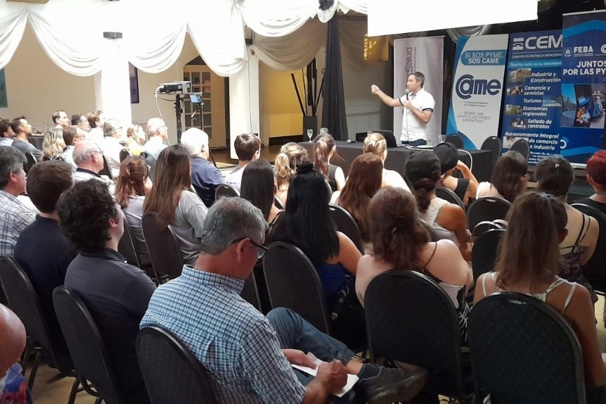 En un evento que fue promovido por FEBA, CAME y la CEM y auspiciado por Sancor Salud, la disertación de Di Pace atrajo a cientos de asociados y no asociados a la Cámara Económica. La charla llevó como título “Actualidad económica y perspectivas” (el futuro del comercio que viene). El analista económico, especialista en Marketing, consultor de empresas, periodista, investigador y escritor, disertó por más de una hora.