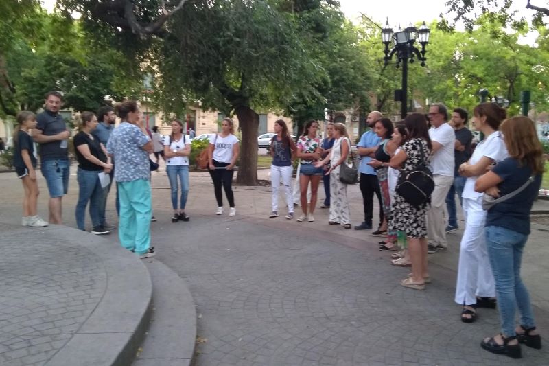 La Médica Clínica Cecilia González Tosello explicó, ante los medios que se hicieron presentes en la plaza San Martín, que buscaban que la hora médica sea digna y esté a la altura de los profesionales. «IOMA, por ejemplo, que es la más grande de la provincia, nos da migajas», contó.