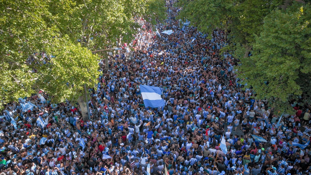 Festejo multitudinario de la 3º copa mundial de Argentina