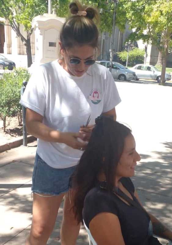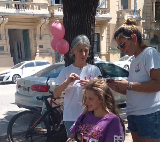 Al cumplirse seis años desde el lanzamiento de Mechas Solidarias, este lunes se instaló un puesto en la Plaza San Martín. Se presentó el trabajo que hace el grupo, mostrando el paso a paso del armado de las pelucas y recibieron donaciones de cabello.