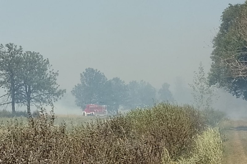 Cerca del mediodía de este domingo se produjo un incendio en un campo cercano al kilometro 99.600 de la Ruta Nacional N° 5.