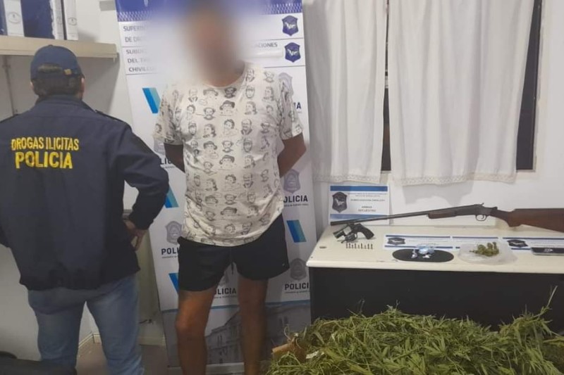 Un hombre de 38 años fue aprehendido acusado de venta de drogas en la localidad de Chivilcoy. En el allanamiento secuestraron cocaína fraccionada, marihuana, y dos armas de fuego. El detenido es trasladado a Mercedes para que declare ante los Fiscales locales.
