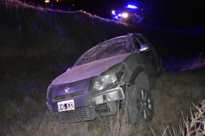El siniestro ocurrió a unos 4,5 kilómetros de la rotonda “del Cimarron”, a la salida de la primera curva, cuando un automóvil Renault Sandero , color gris , dominio KHG532 , que circulaba en sentido General Rivas-Suipacha , al salir de la curva existente en el lugar se despista hacia el sector de banquina , impactando contra un talud de tierra donde vuelca , finalizando dentro de una profunda cuneta ubicada a la vera de la ruta.