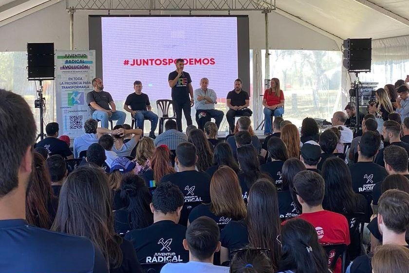 El pasado sábado, en la ciudad de San Nicolás, se llevó a cabo el primer campamento de formación política de la Juventud Radical Evolución. Participaron más de 600 jóvenes de la provincia de Buenos Aires. Hubo paneles que abarcaron los roles de la juventud en gestión y procesos de renovación de políticas locales.