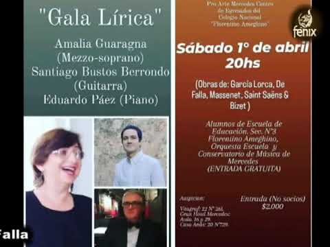 El próximo sábado, 1 de abril a partir de las 20:00, PRO ARTE MERCEDES – Centro de Egresados del Colegio Nacional Florentino Ameghino –  presenta a las prestigiosa mezzosoprano mercedina  Amalia Guaragna en una Gala Lírica, acompañada por Eduardo Páez  (piano) y Santiago Bustos Berrondo (guitarra).