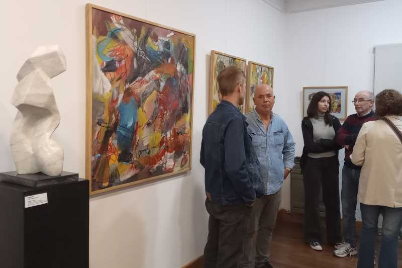 En la muestra, Blasberg expone por primera vez sus pinturas abstractas, mientras que Cáceres expone por primera vez en Mercedes. Entre las esculturas expuestas hay obras premiadas en distintos certámenes.