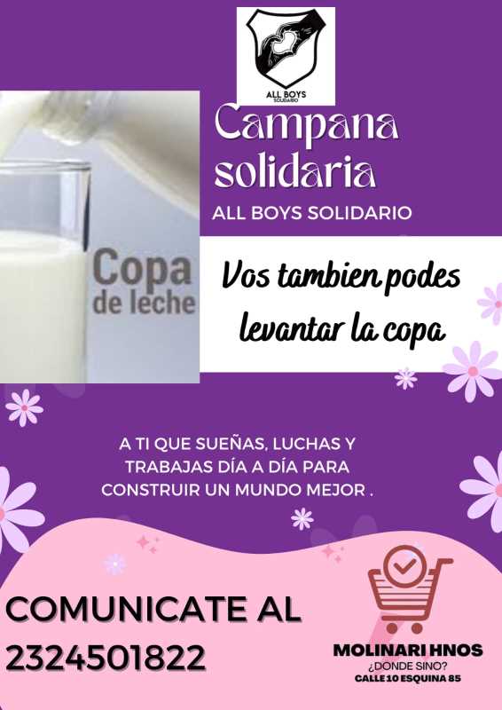 Una nueva campaña solidaria lleva adelante el Club All Boys, específiciamente la división All Boys Solidario. El objetivo es lograr 10 mil copas de leche para niños de Salta y Jujuy.