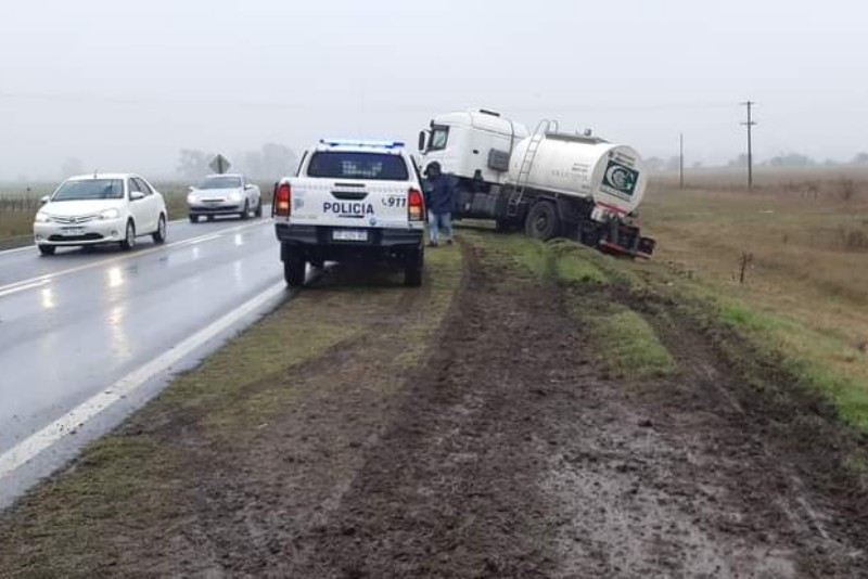 De acuerdo a la información llegada desde el lugar, el vehículo no alcanza a detenerse a tiempo para ingresar al establecimiento Piedras Blancas por lo que decide ingresar a la banquina , que se hallaba resbaladiza debido a la lluvia, lo que provoca que el rodado finalice encajado.