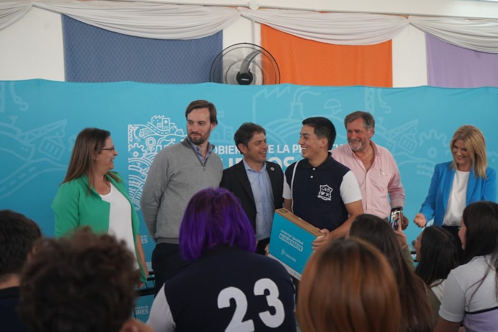 En el marco del programa Conectar Igualdad Bonaerense, el gobernador de la provincia de Buenos Aires, Axel Kicillof encabezó este miércoles el acto de entrega de 87 computadoras a estudiantes de cuatro escuelas secundarias y técnicas del municipio de Suipacha, junto a la vicegobernadora Verónica Magario; el intendente local, Alejandro Federico; y el concejal Juan Luis Mancini.