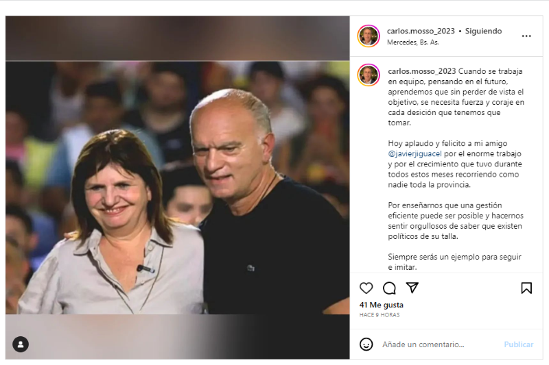 De esta forma, Carlos Mosso, concejal mercedino que trabaja para ser candidato a Intendente de Mercedes en la línea de Patricia Bullrich y que supo recibir y trabajar con Javier Iguacel, expresó su agradecimiento al Intendente de Capitán Sarmiento y confirmó su continuidad con «Pato».