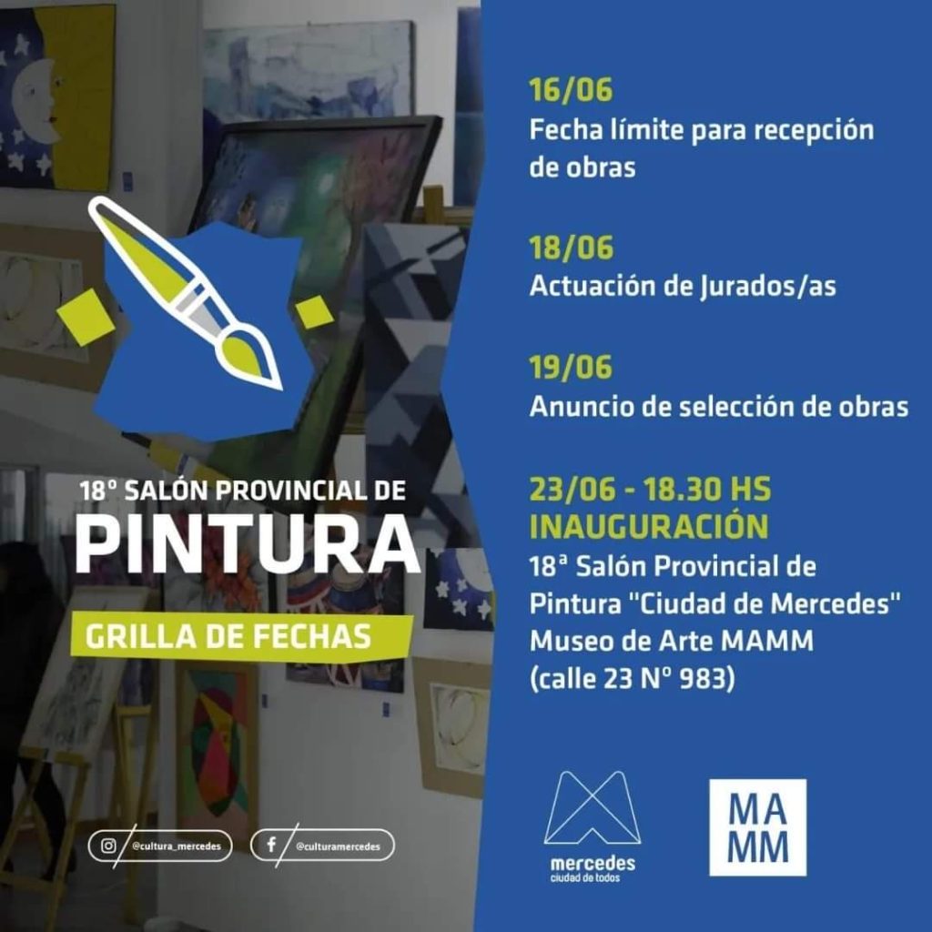 La Dirección de Cultura de Mercedes anunció la convocatoria para el Salón de Pintura «Ciudad de Mercedes». Para conocer más información se pueden comunicar al Museo de Arte (MAMM)