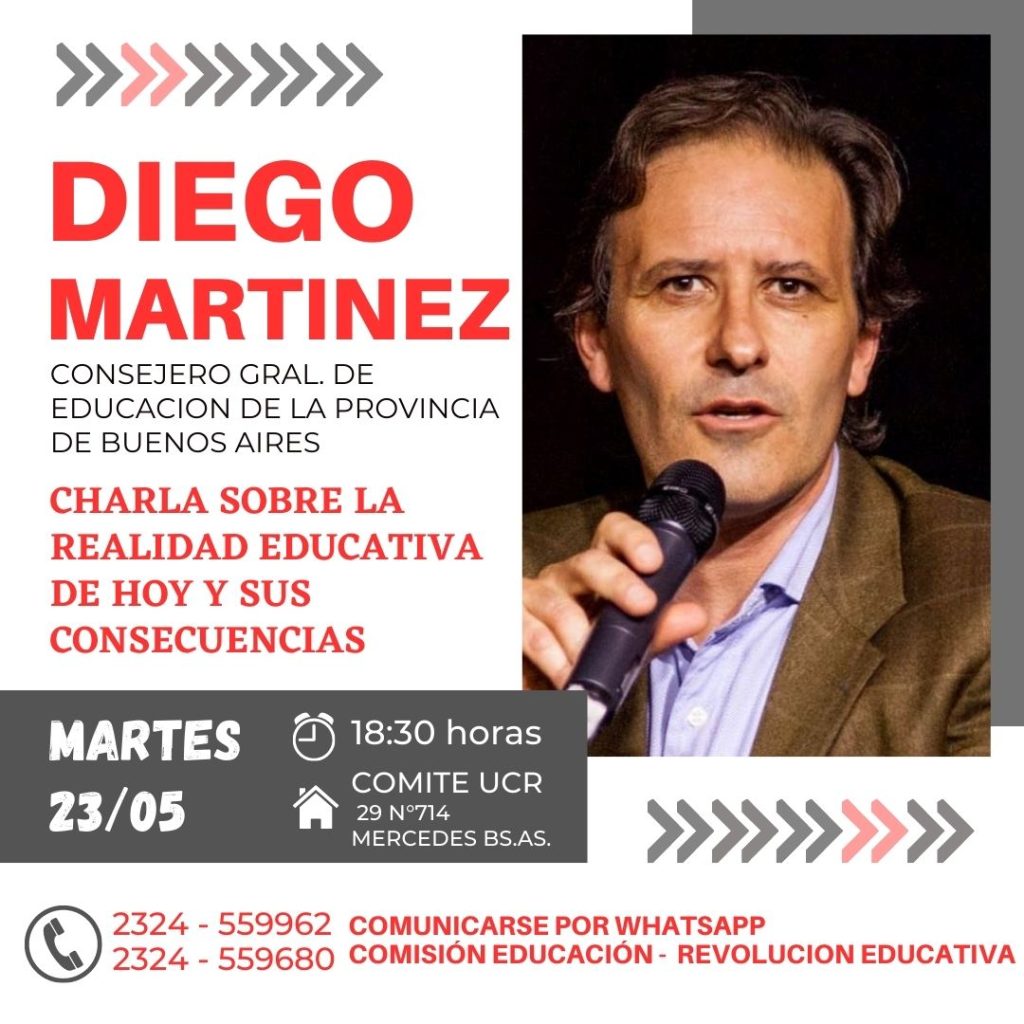 Desde la Unión Cívica Radical hacen extensiva la invitación a participar de la charla con Diego Martínez sobre «la realidad educativa de hoy y sus consecuencias». La disertación será el martes 23 de mayo, 18:30 horas, en el Comité de Distrito de Avenida 29, entre 30 y 32.