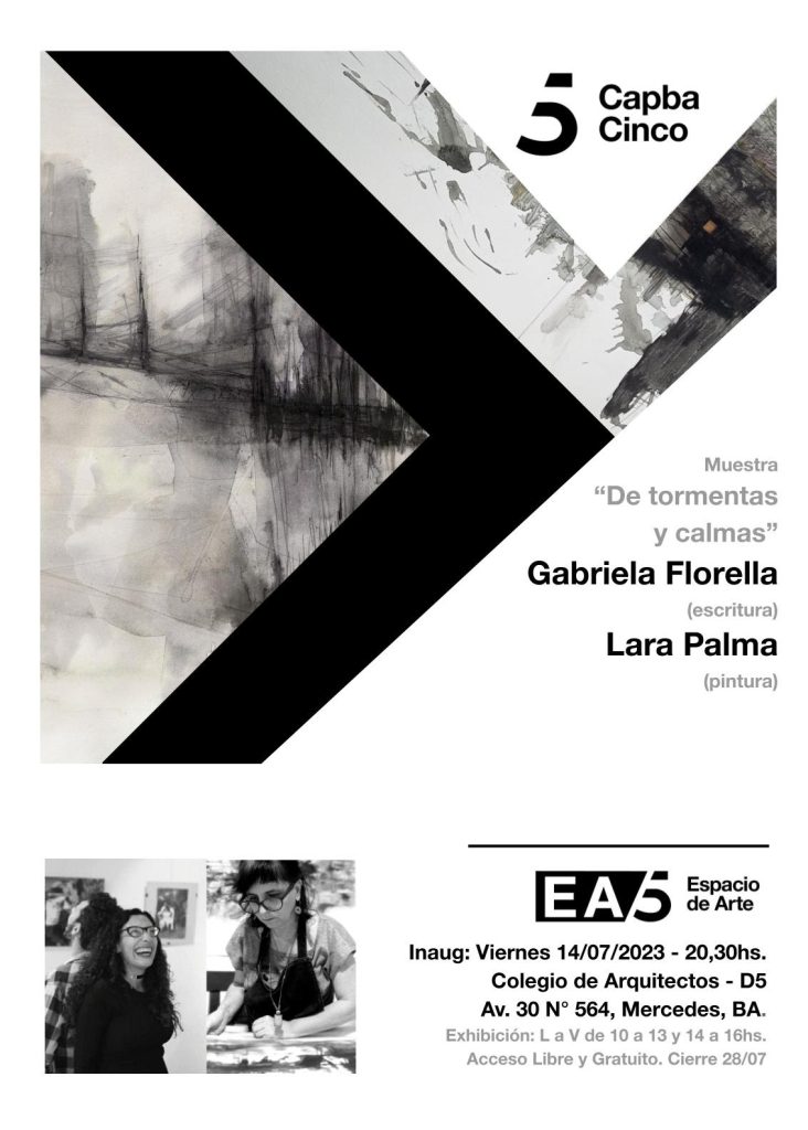 Quienes expondrán serán las artistas Gabriela Florella (escritura) y Lara Palma (pintura); con su muestra titulada “De Tormentas y Calmas”. La muestra comprende Pinturas y Escritos.