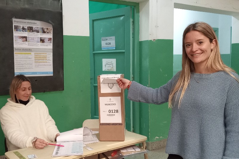Minutos antes del mediodía de este domingo de elecciones, la precandidata a Intendente Municipal por el espacio Juntos, Noelia Ruíz, votó en la escuela 8 y luego habló con los medios locales.
