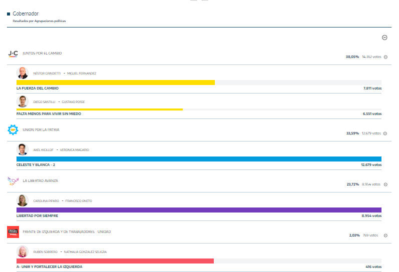 En la gobernación, los mercedinos eligieron mayoritariamente a Kicilof, pese a que en este cuerpo también, la fuerza más votada fue Juntos. No obstante, la candidata de La Libertad, Carolina Píparo, obtuvo también un buen caudal de votos.