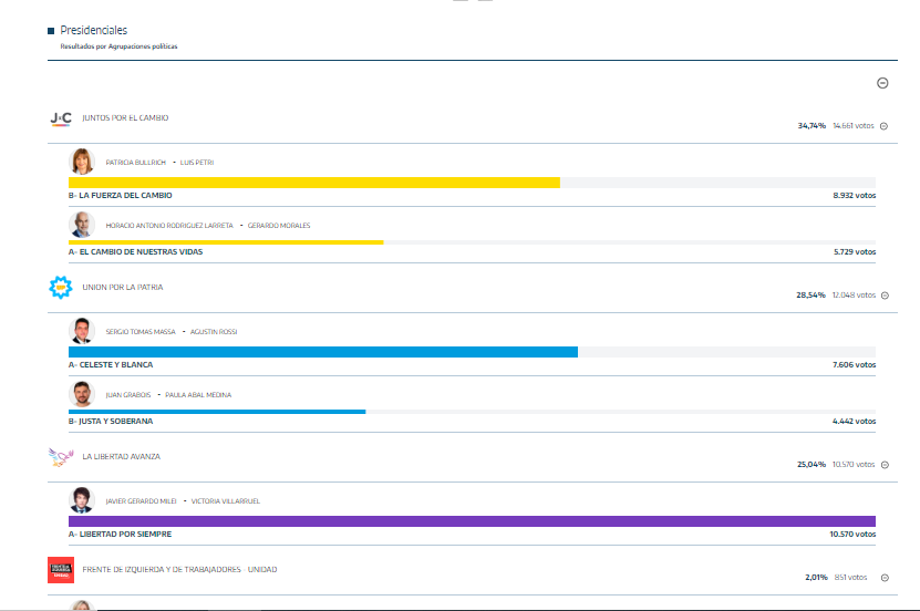No obstante, sorprendió el corte de boletas entre el cuerpo local y el restante. Entre los candidatos a Presidente, en Mercedes, Javier Milei obtuvo mayor cantidad de votos, aunque la fuerza con más votos fue la interna de Juntos. Habría que ver si estos porcentajes en octubre cuando los argentinos volvamos a las urnas en las elecciones generales.