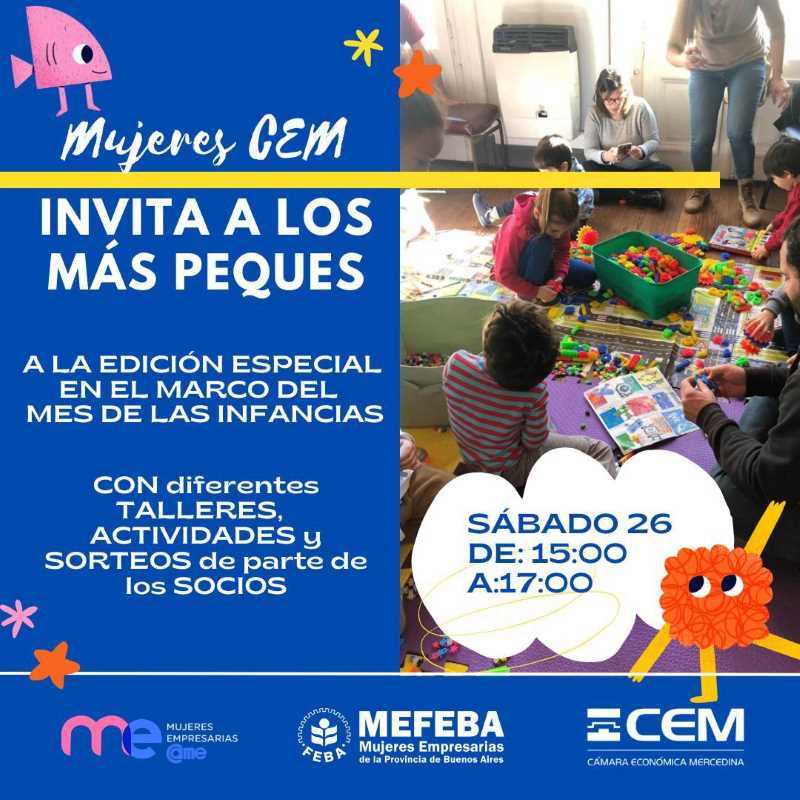 La Subcomisión de Mujeres de la Cámara Económica Mercedina llevará adelante una actividad abierta a la comunidad en el marco del mes donde se celebra la niñez. Entre las 15 y 17 horas, del sábado 26 de agosto en la sede de la CEM, habrá talleres, actividades recreativas, espectáculos infantiles y sorteos para los más pequeños.
