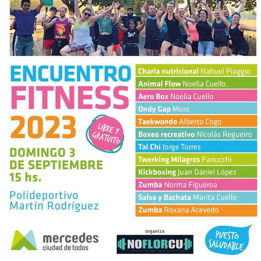 El próximo domingo 3 de septiembre se realizará un encuentro fitness en el predio del Martín Rodríguez de la ciudad de Mercedes. A partir de la hora 15, habrá actividades aeróbicas, fitness y deportes relacionadas.