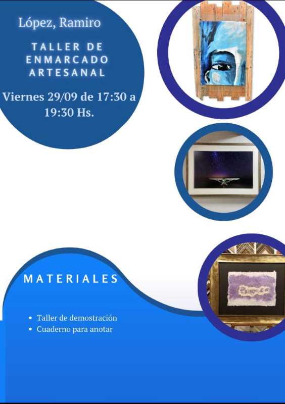 De 17:30 a 19:30 horas. Taller de Enmarcado Artesanal. A cargo de Ramiro López.